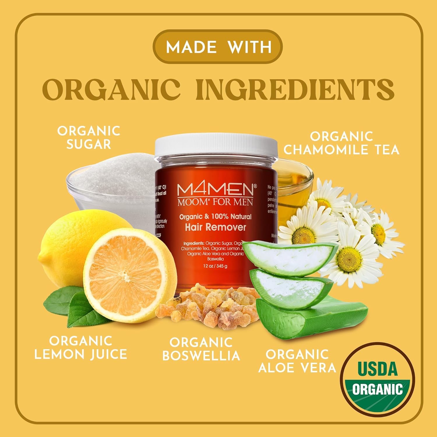 1 of MOOM Organic Hair Removal Sugar Wax for Men with Aloe Vera & Chamomile – Soft Wax for Sensitive Skin & Men Hair - Perfect for Back, Chest, Eyebrow & Body - 12 oz Jar (Strips & Sticks NOT Included)