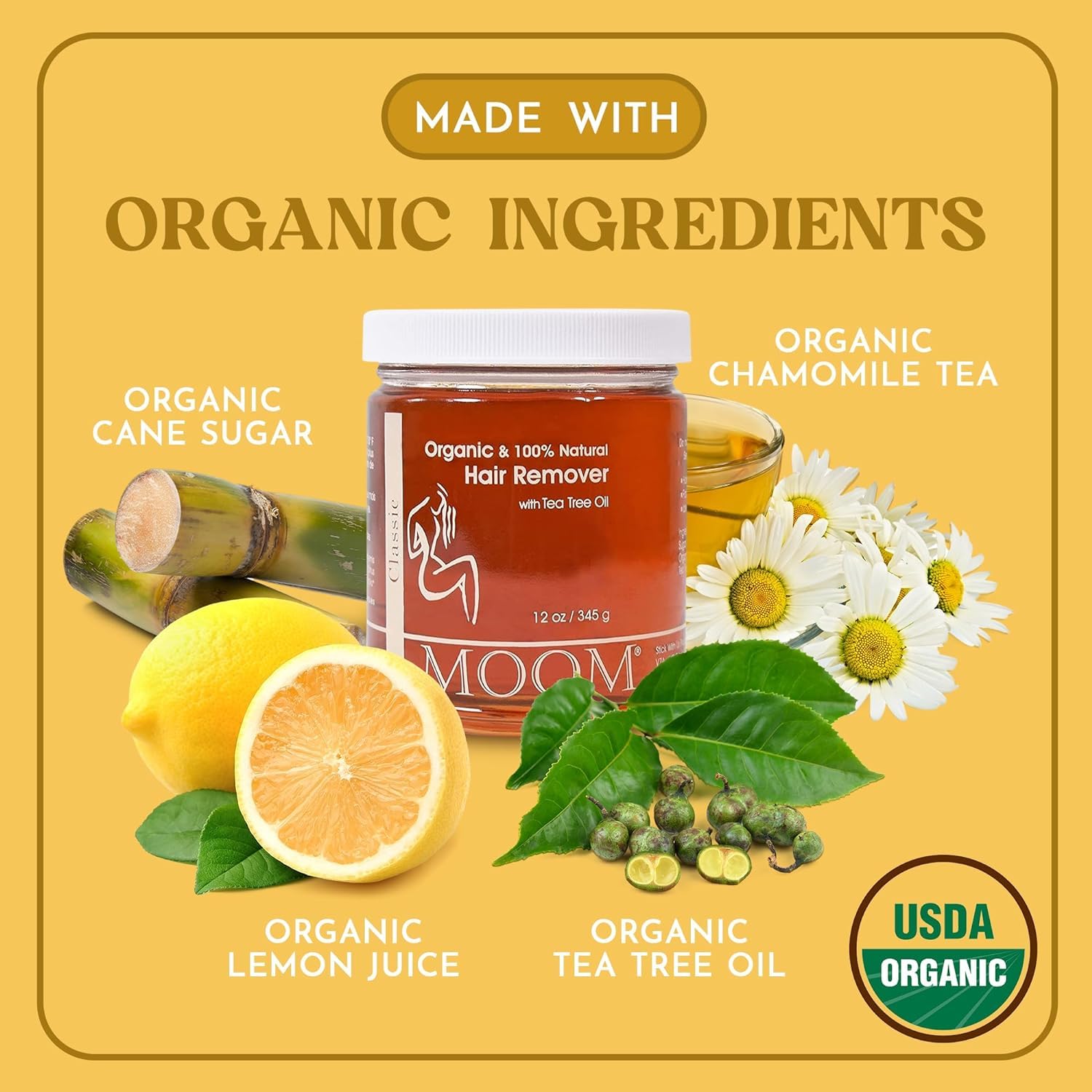 1 of MOOM Organic Sugar Wax with Tea Tree Oil, 12 oz Jar, Hair Removal for Bikini, Brazilian, Face & Legs - Soft Wax for Sensitive Skin, Wax Beads Alternative For Women & Men (Strips & Sticks NOT Included)